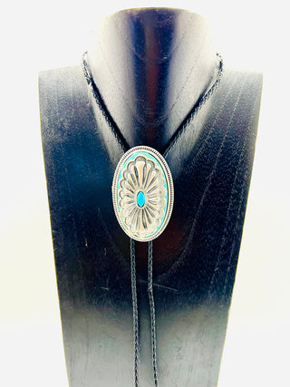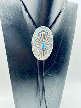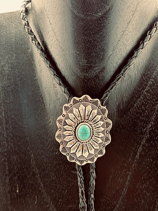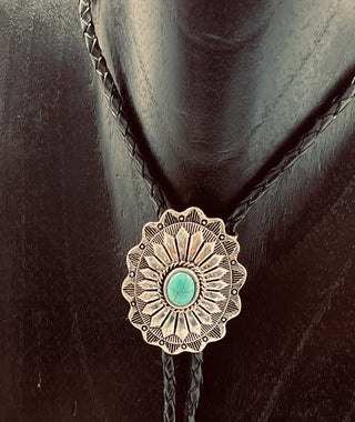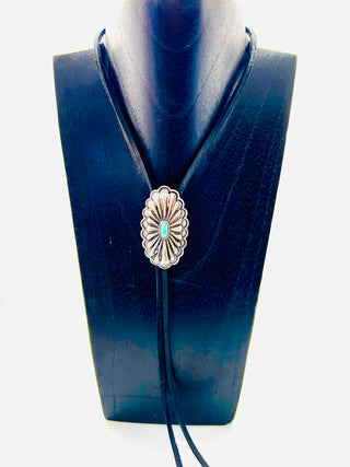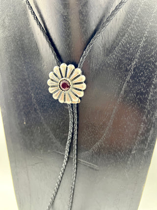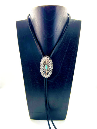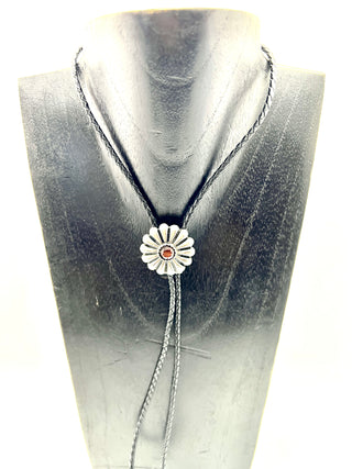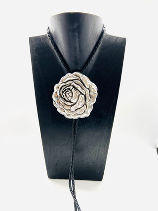 Silver Floral Bolo Tie with Black Leather Cord | Worn by Lainey Wilson & Michael Trotter