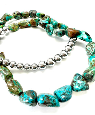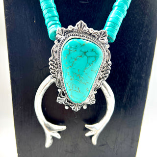 Heishi Turquoise Necklace with Western Squash Blossom Pendant