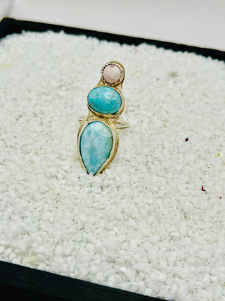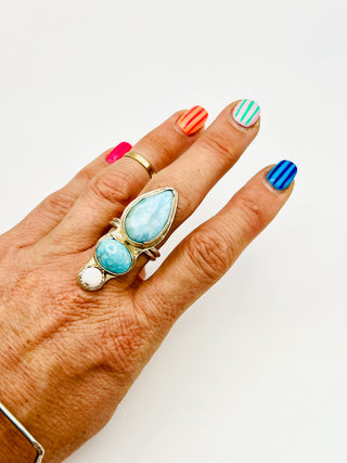 Sterling Silver Ring | Conch, Turquoise & Larimar Gemstones | Size 7.5 | Bohemian Coastal Jewelry
