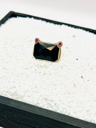 Sterling Silver Ring | Black Onyx Emerald Cut Center & Fuchsia Preciosa Accents | Size 8.25 | Bold Statement Jewelry
