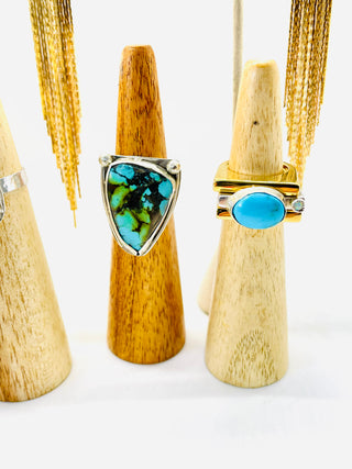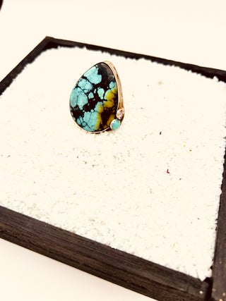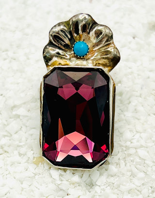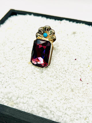 Hubei Turquoise Statement Ring with Pink Crystal & Arizona Turquoise – Sterling Silver Bohemian Jewelry