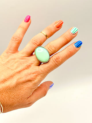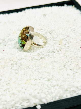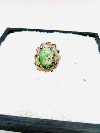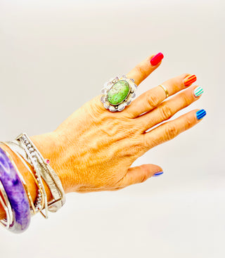 Vintage-Inspired Green Turquoise Ring – Sterling Silver Bohemian Statement Jewelry