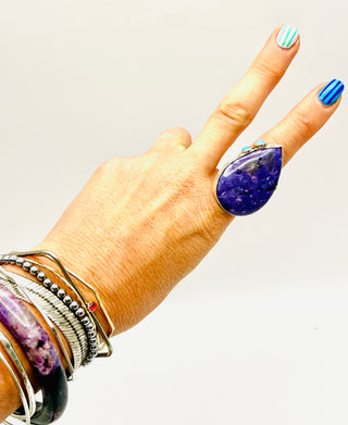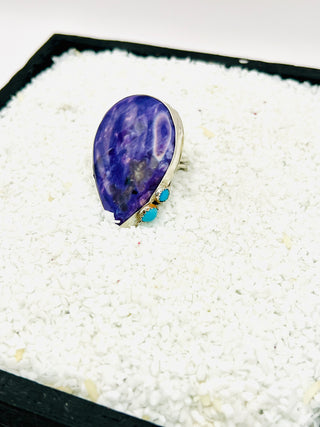 Rare Charoite Ring in Sterling Silver with Turquoise Bezel Accents