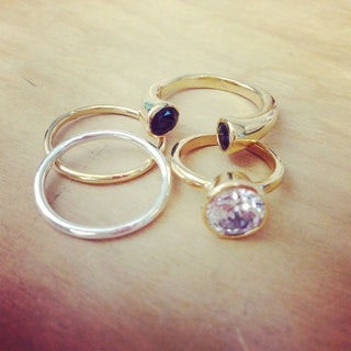 Sterling Silver Ring | Purple Preciosa Crystal & 2mm Turquoise Ring